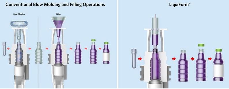 LiquiForm集团称,该技术把瓶成型和填充工艺合二为一,免除了多项繁琐的生产步骤,大大减少了成本和废弃物。